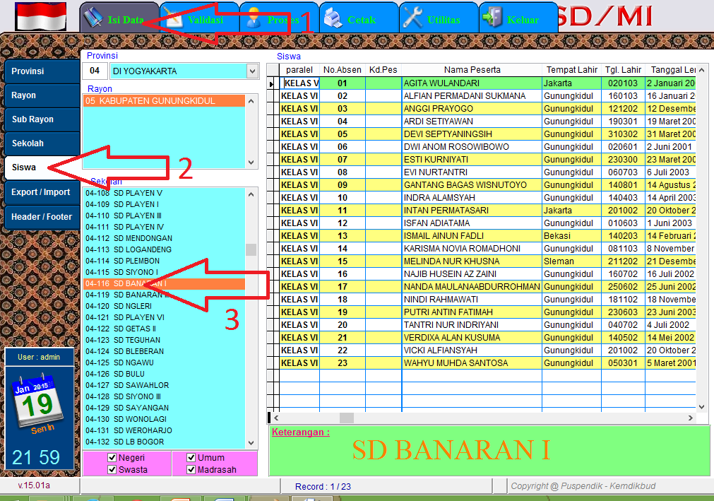 3. Buka file BIODATA UASBN.exe , Login ke aplikasi ikuti langkah berikut: